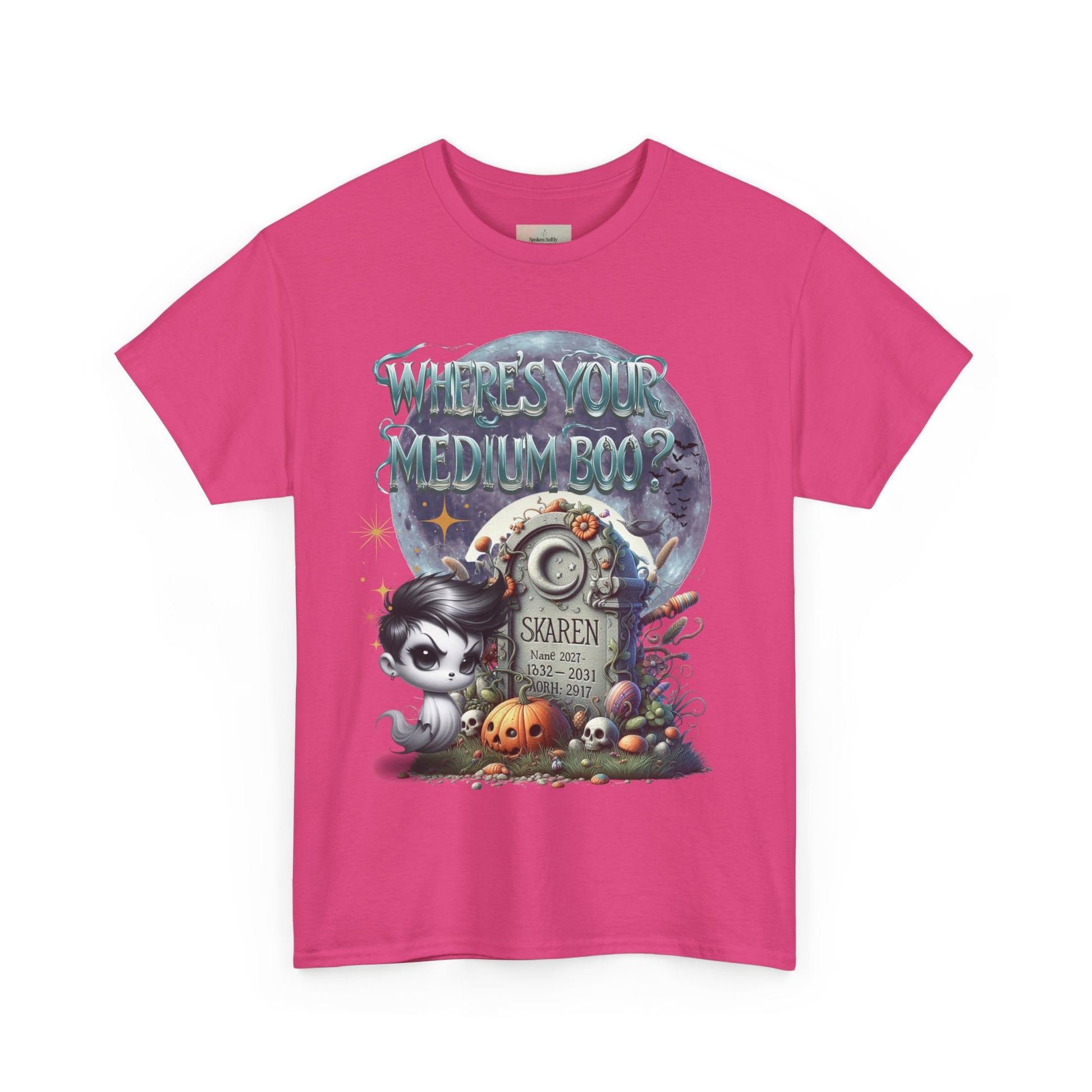 Strike the perfect balance between spooky and silly with our “Medium Boo” Tee — a playful twist on Halloween vibes for those who love their scares with a side of sass. Featuring a creepy-cute ghost graphic, this unisex cotton t-shirt is soft, comfy, and ready for every haunted hangout or pumpkin patch photo-op.
