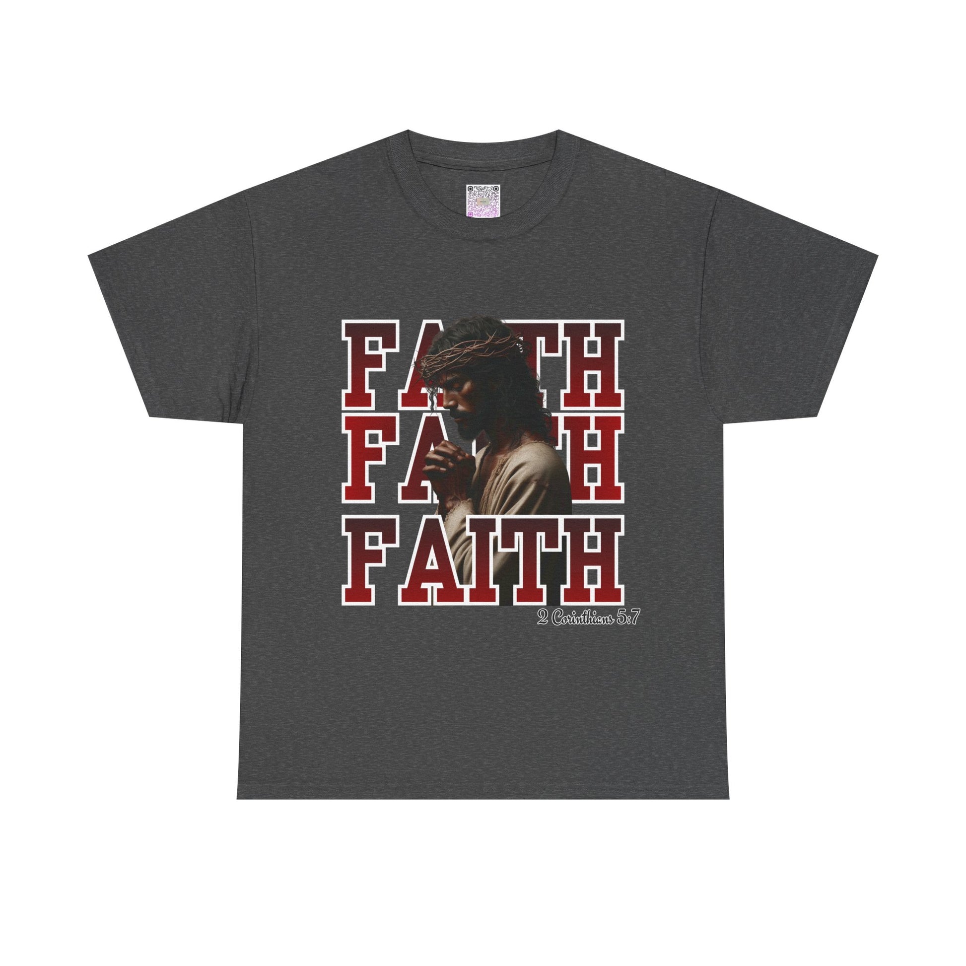 Faith Prayer T-Shirt – “Faith” with Praying Jesus Graphic, 2 Corinthians 5:7 Christian Tee, Inspirational Unisex Shirt, Spiritual Apparel