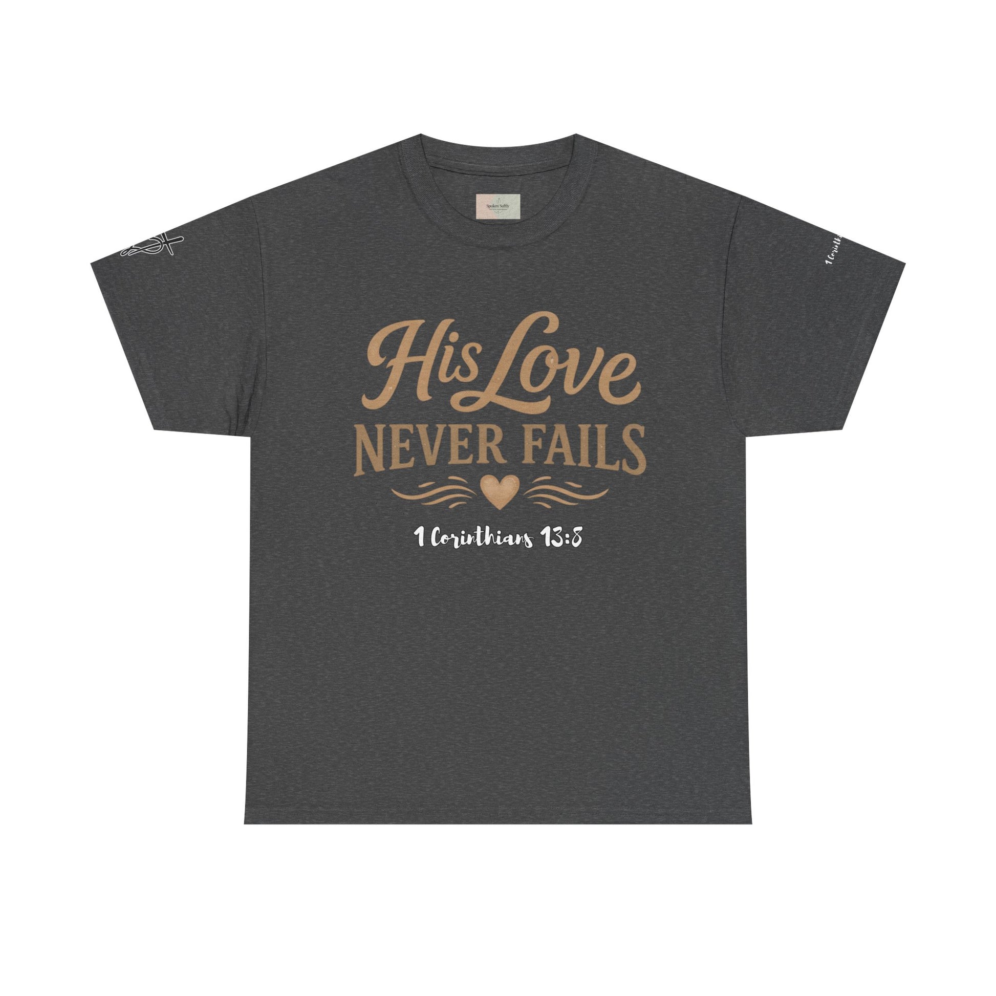 His Love Never Fails T-Shirt — 1 Corinthians 13:8 Christian Faith Tee